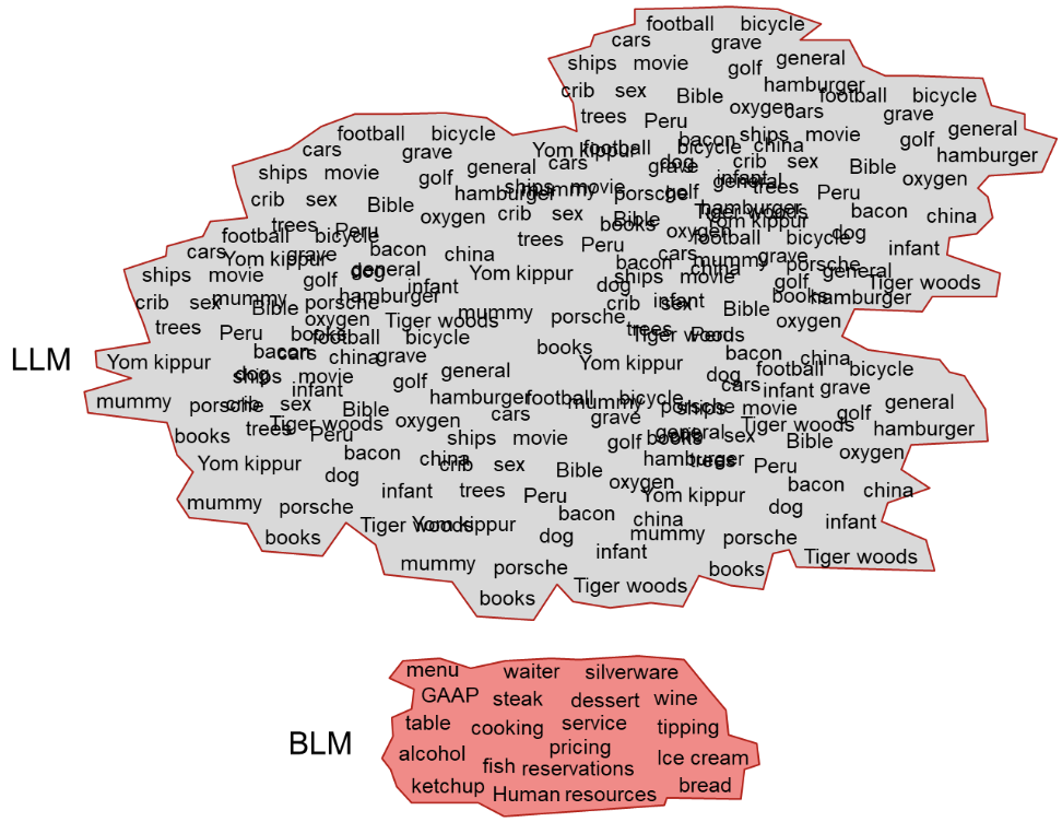 The BLM contains, on the other hand, only those words significant to a single business endeavor. Unlike the LLM, the BLM is focused. The business endeavor found in the BLM may encompass such things as –