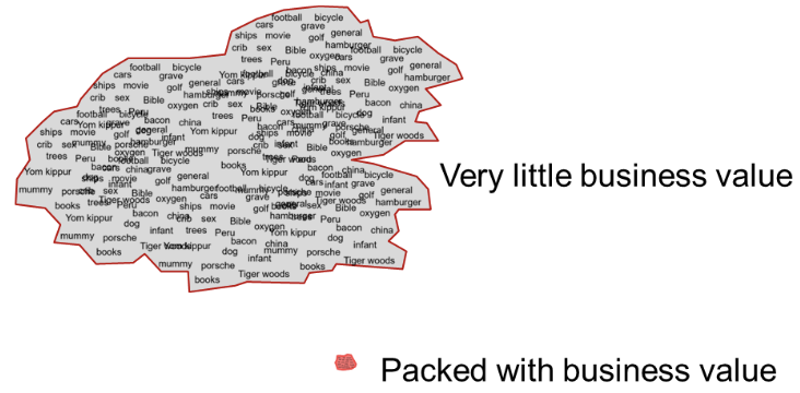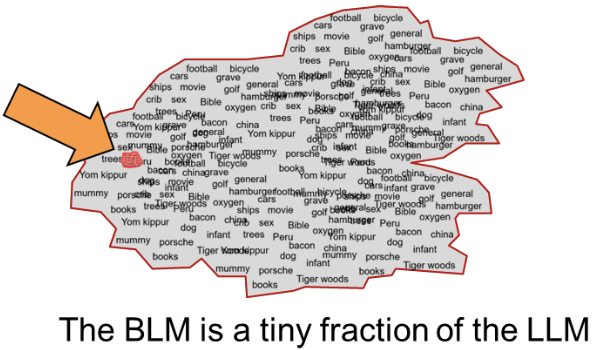 The LLM contains huge amounts of vocabulary that have little or no business value. Organizations find that trying to create an LLM that contains very limited business value is a waste of time and money.