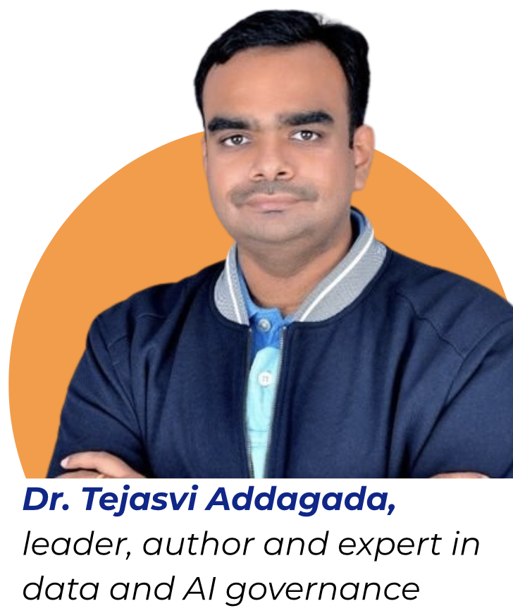 Dr. Tejasvi Addagada is a technology leader, bestselling author, and a prominent expert in data and AI governance. He led multiple Data and AI management and governance functions for global banks and is an advisor to Fortune 500 firms, he has over 15 years of experience in data strategy and risk management. He authored several best-selling books, including Data Risk Management and Data Management and Governance Services. Addagada has also contributed pioneering research on Generative AI within corporate data environments. His work spans various sectors, including banking and healthcare, where he focuses on transforming complex data challenges into strategic business opportunities.